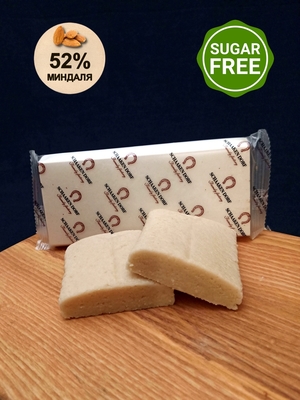 Состав: миндаль 52%, подсластитель (мальтитовый сироп). Может содержать следы переработки молочных продуктов, продуктов переработки сои, арахиса, глютена (белка злаковых культур)