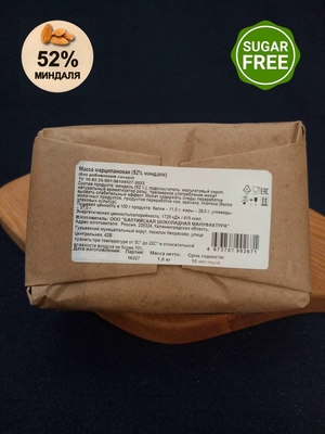 Марципановая масса без сахара с содержанием миндаля 52%. Масса нетто - 1000 грамм.