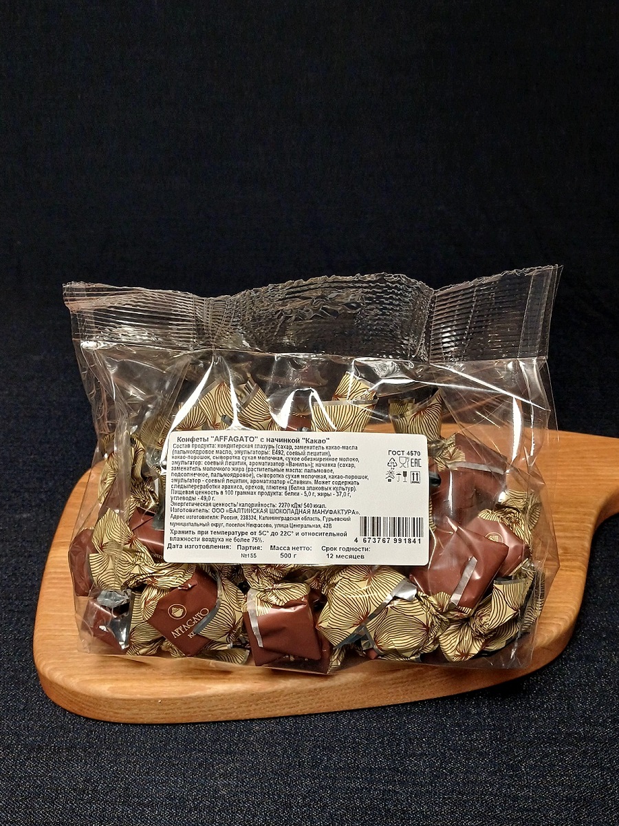 Состав продукта: кондитерская глазурь (сахар, заменитель какао-масла (пальмоядровое масло, эмульгаторы: Е492, соевый лецитин), какао-порошок, сыворотка сухая молочная, сухое обезжиренное молоко, эмульгатор: соевый лецитин, ароматизатор «Ваниль»); начинка (сахар, заменитель молочного жира (растительные масла: пальмовое, подсолнечное, пальмоядровое), сыворотка сухая молочная, какао-порошок, эмульгатор - соевый лецитин, ароматизатор «Сливки». Может содержать следы переработки арахиса, орехов, глютена (белка злаковых культур).