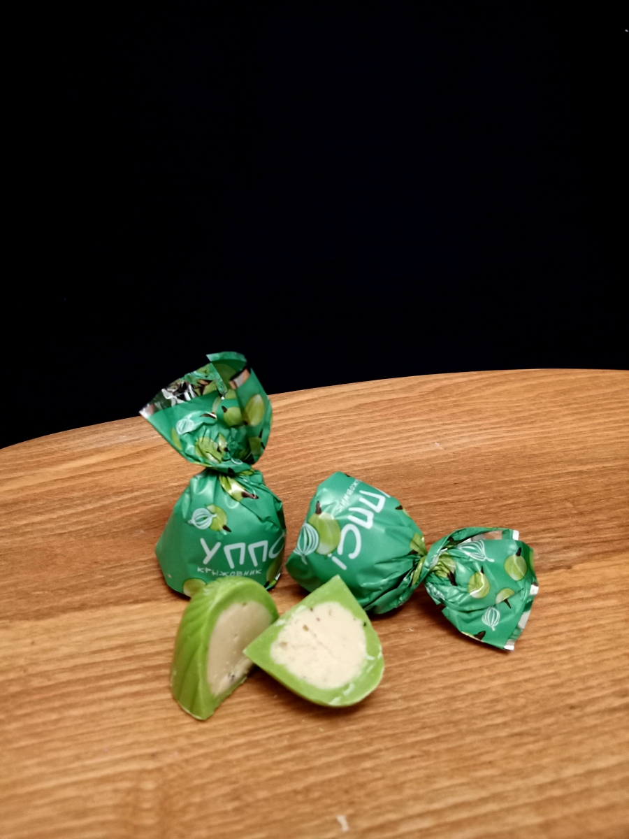 Конфеты с натуральным крыжовником в йогуртовой начинке.