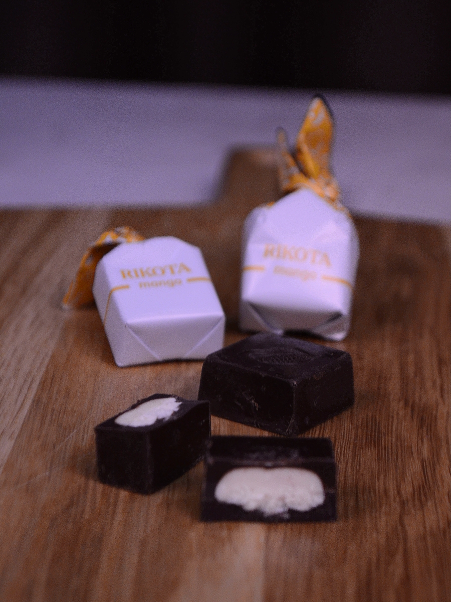 Сочетание нежного вкуса сыра Рикотта с ароматной кислинкой манго, дополненное темной шоколадной глазурью.