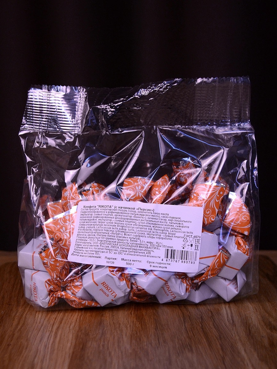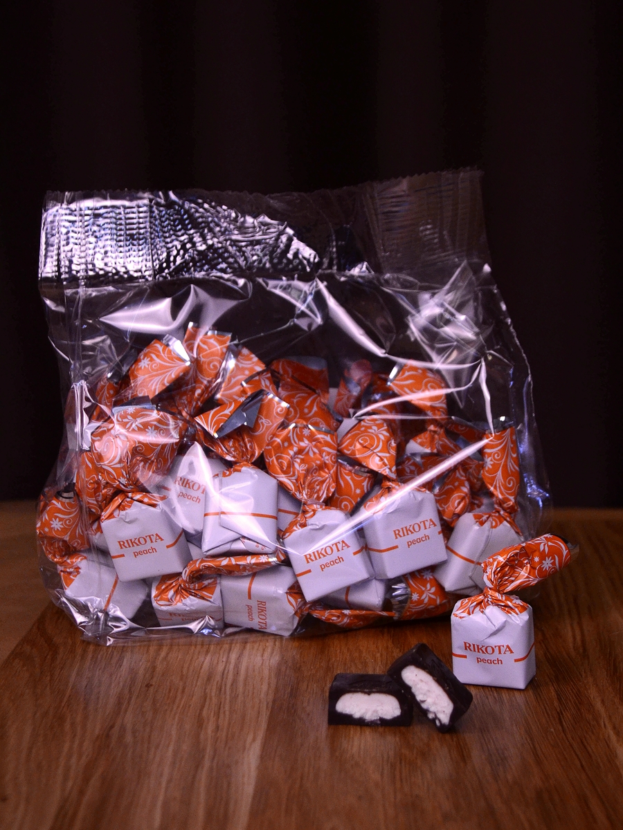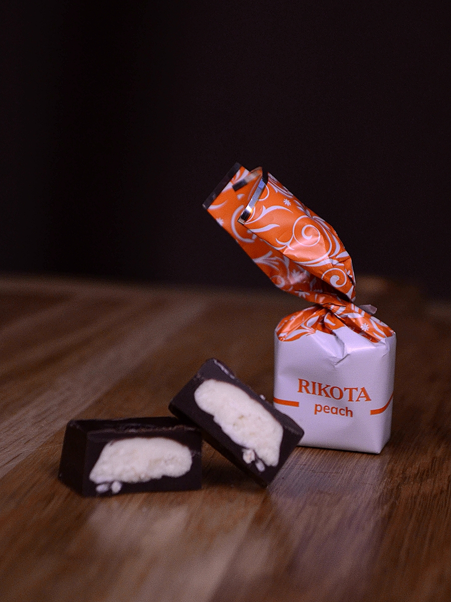 Сочетание нежного вкуса сыра Рикотта с ярким ароматом персика, дополненное темной шоколадной глазурью.
