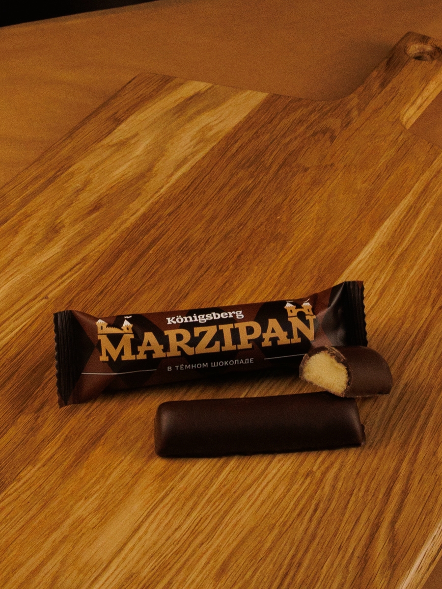 Марципановый батончик (33% миндаля) в натуральном темном шоколаде.