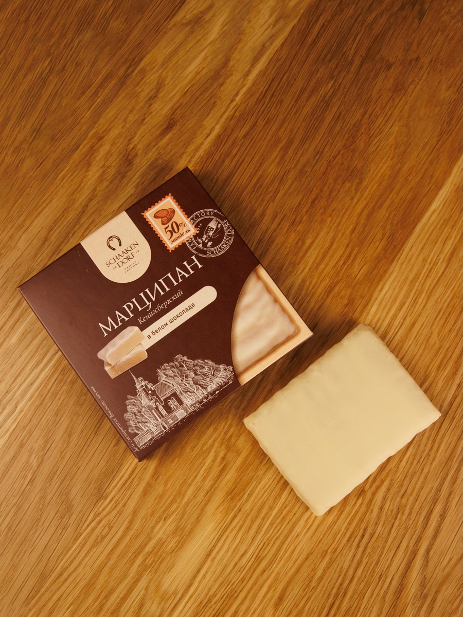 Марципановая плитка (50% миндаля) в натуральном белом шоколаде.