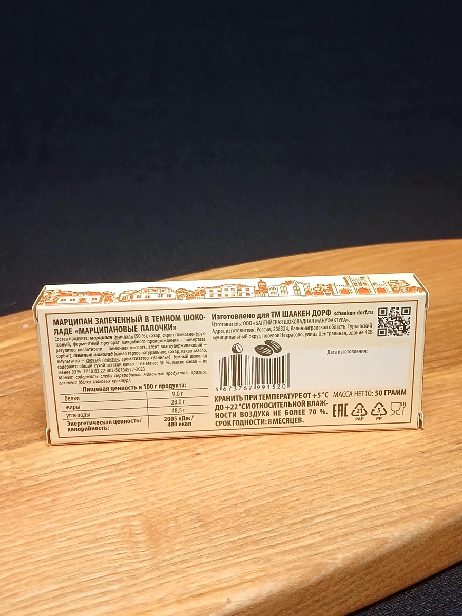 - Марципановые палочки запеченные в темном шоколаде, 50 гр