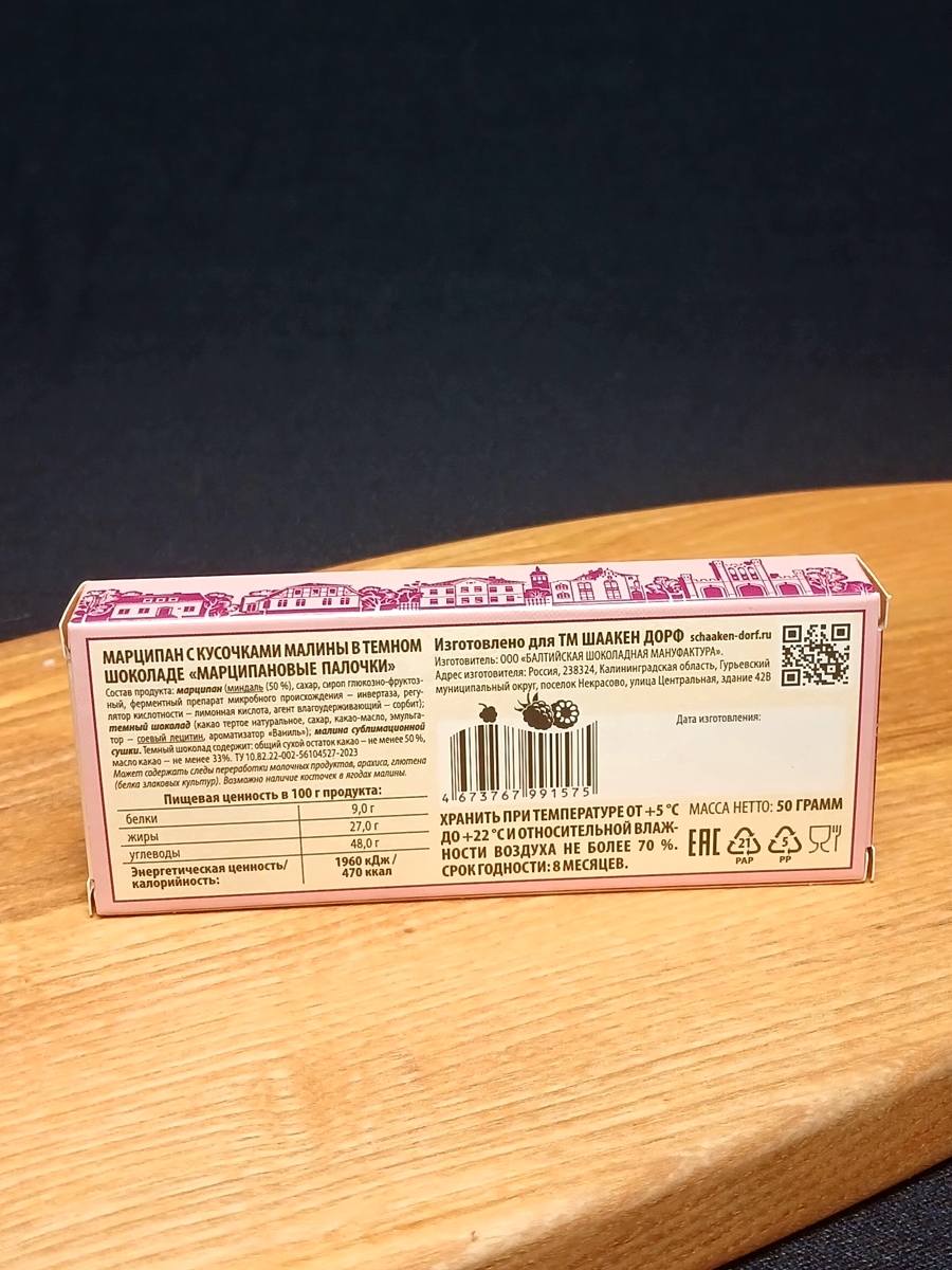 Отзывы — Марципановые палочки с кусочками малины в темном шоколаде, 50 гр