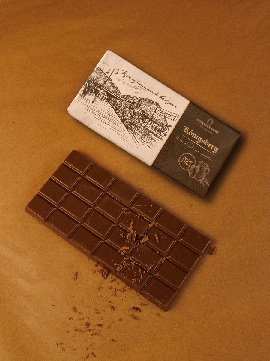 Молочный шоколад (35% какао). Обертка с изображением Центрального вокзала Кенигсберга.