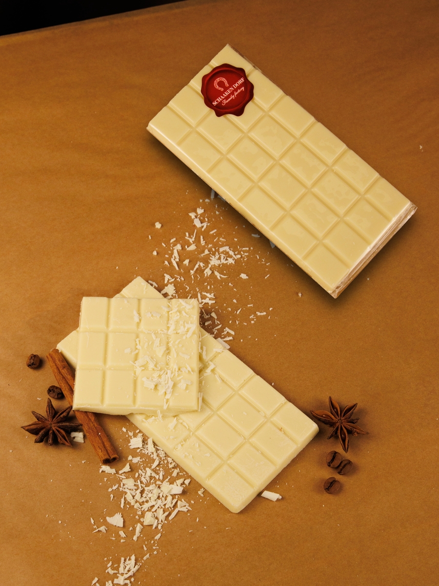 Состав: сахар, какао-масло, сухое обезжиренное молоко, сыворотка сухая молочная, молочный жир, эмульгатор – соевый лецитин, ароматизатор «Ваниль»