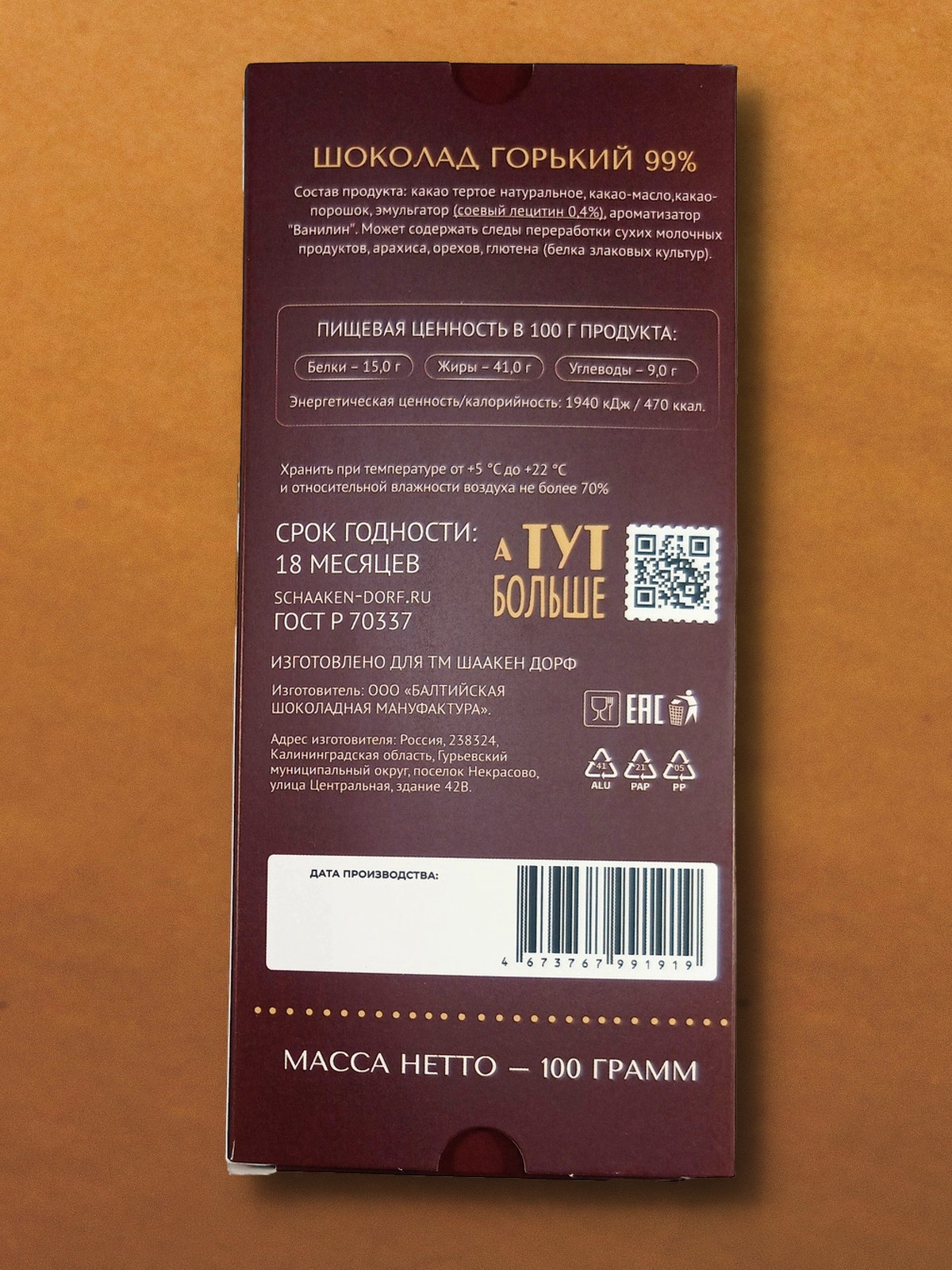| Компания производитель | ООО "Балтийская Шоколадная Мануфактура" |