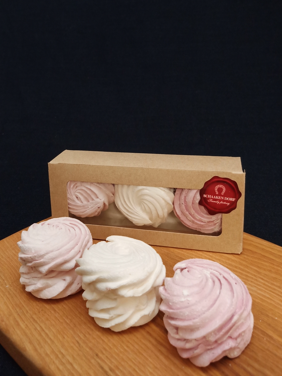 Ассорти из классического зефира, зефира с черной смородиной и зефира с малиной.