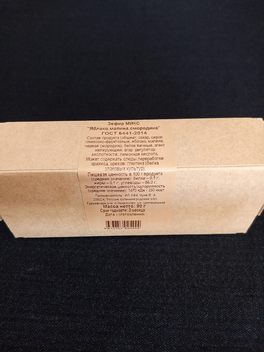 Состав: сахар, сироп глюкозно-фруктозный, яблоко, малина, черная смородина, белок яичный, агент желирующий: агар, регулятор кислотности: лимонная кислота.